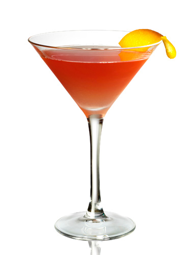 Fill your cocktail shaker with ice. Add everything except the lemon and shake until the outside of the shaker is frosty and cold. Pour into a chilled martini glass and garnish with the lemon twist.